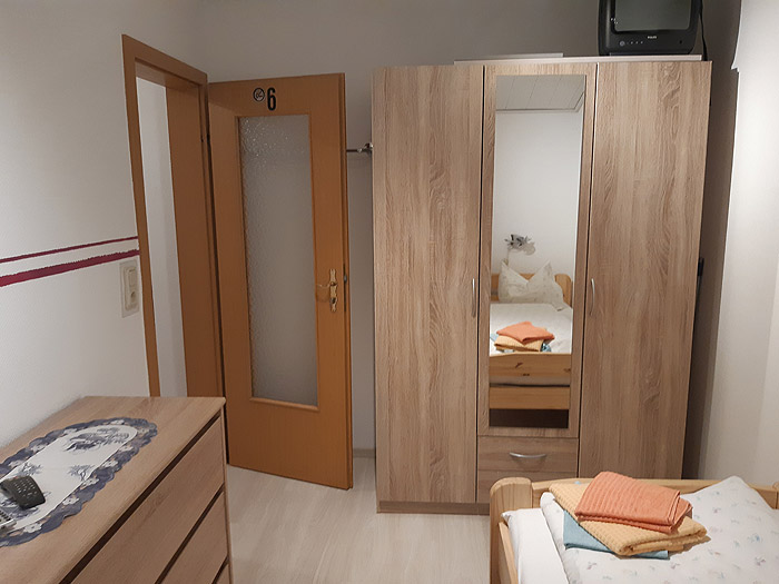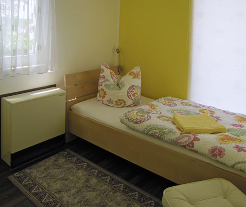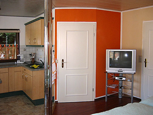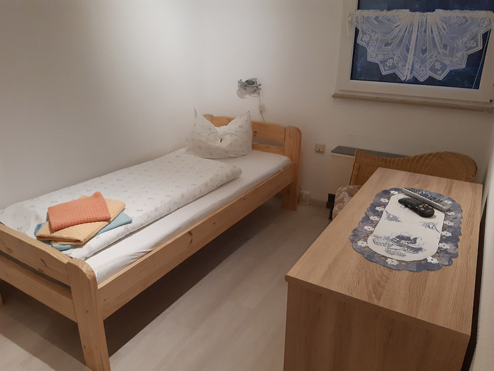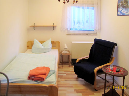 Diese Ferienwohnung bietet Platz für 3-4 Personen. Ausstattung: Wohnraum mit Einzelbett, Sitzecke mit Klapp-Couch (Schlaffunktion)TV, Schlafraum mit Doppelbett, komplette Küche mit Herd, Kühlschrank, Microwelle usw., sowie einem Waschtrockner, für dessen Benutzung ein kleiner Obulus zu entrichten wäre. Bad mit Dusche /WC, Dusche ebenerdig. Kostenloses WLAN ist in allen Zimmern verfügbar.