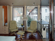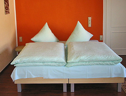 Diese Ferienwohnung bietet Platz für 2 Personen. Auf Wunsch können 1-2 getrennte Schlafzimmer dazugebucht werden. Sie grenzen unmittelbar an die Ferienwohnung, wären aber auch durch einen separaten Korridor und Eingang begehbar, auch separate Dusche/WC Benutzung möglich. Die gesamte Wohnung ist ebenerdig ohne Stufen und Schwellen, Türenbreite 86cm und somit auch behindertengerecht.